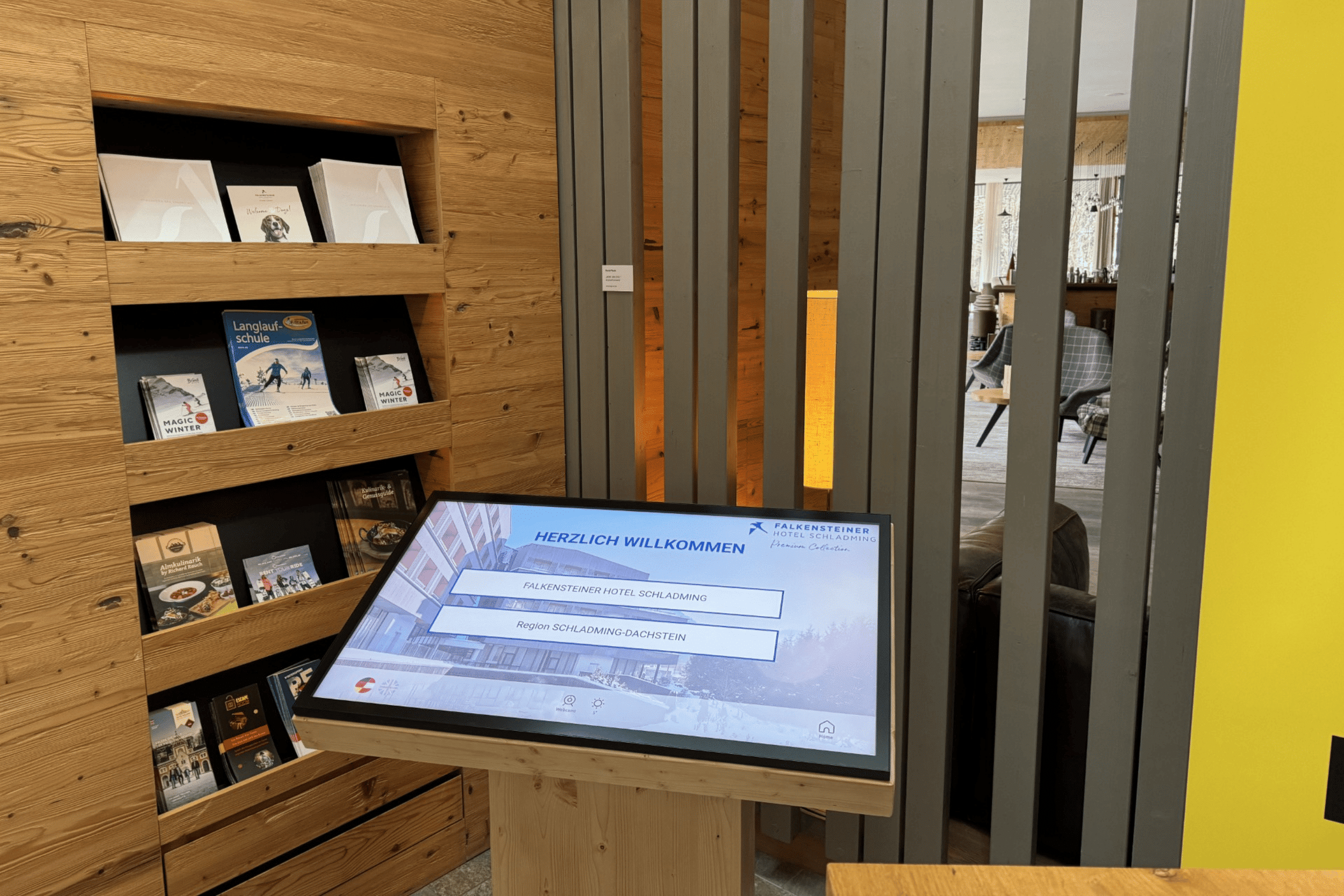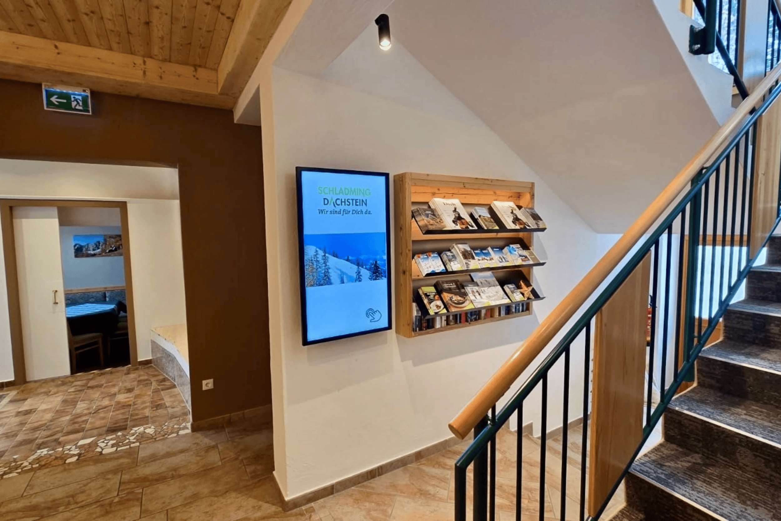 Der Tourismusverband setzt auf eine Mischung aus digitalen Full-Outdoor Touch-Stelen, Touch-Displays und mobile Displays an stark frequentierten Orten für zusätzliche Sichtbarkeit. Ergänzend wurden in Nächtigungsbetrieben Screens im Eingangsbereich installiert, die Gäste direkt vor Ort informieren. Besucher erhalten unkompliziert allgemeine Inhalte, die je nach Standort um spezifische Informationen ergänzt werden. Wird ein Gerät nicht aktiv genutzt, spielt es automatisch Veranstaltungshinweise oder regionale Informationen ab und dient gleichzeitig als Werbefläche.
